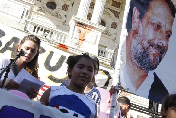 Quiero decir unas breves palabras y empiezo citando una frase que tiró Agustín Sanguinetti, uno de los chicos de Casa Joven, en el corto audiovisual que hicieron los pibes para presentar en el Programa Jóvenes y Memoria de Chapadmalal: “Nosotros no somos el futuro, nosotros somos el presente”. Y acá estamos, de pie, haciéndole entender al señor Gobernador y a sus ministros que la inseguridad es no tener en el barrio “un lugar como éste” como dice Marquitos, otro de los pibes, refiriéndose a Casa Joven. Que la inseguridad es crecer sin padres o con padres sin laburo, o con madres bancándoselas todas. Que la inseguridad es pasar frío, tener que salir a laburar aún niño para parar la olla. Que la inseguridad es no tener luz en el barrio, ni cloacas y que se inunde SIEMPRE que caen dos gotas. Que la inseguridad son las ratas en los pastizales y los basurales, porque no pasa el basurero, porque las calles se abrieron a la que te criaste, sin trazado, por tener la mínima conquista de un pedazo de tierra donde plantar el hogar. Que la inseguridad es que no pasen los bondis, que te cagues de frío a la mañana yendo a la escuela a pata y que a la escuela no le importe desde dónde te venís para estudiar, ni en qué lugar vas a hacer la tarea si tenés que compartir la pieza con otros hermanos con la misma exigencia. Que la inseguridad es ir a la salita y que la médica, la pediatra, la obstetra sean sensoras morales que te digan todo lo que estás haciendo mal y que en el hospital público te manden a hacerte un estudio de sangre en un laboratorio privado y que ahí te juzguen por cómo te hiciste tus tatuajes o que te manden recetas de medicamentos que no podés comprar o que te recomienden una dieta que no podés hacer porque no te alcanza la guita para tener salud. Que la inseguridad es no tener una escuela propia en el barrio. Que la inseguridad es tener trabajos precarios que te pagan dos mangos y si faltás porque te diste vuelta con tanta porquería que anda dando vueltas en el barrio, porque hay tantos transas y ningún CPA, te rajan y andá a cantarle a Gardel. Que la inseguridad es no tener unas llantas piolas para ir a la escuela porque te tocó por azar vivir en la pobreza.