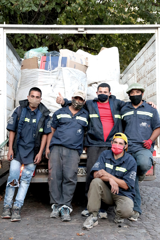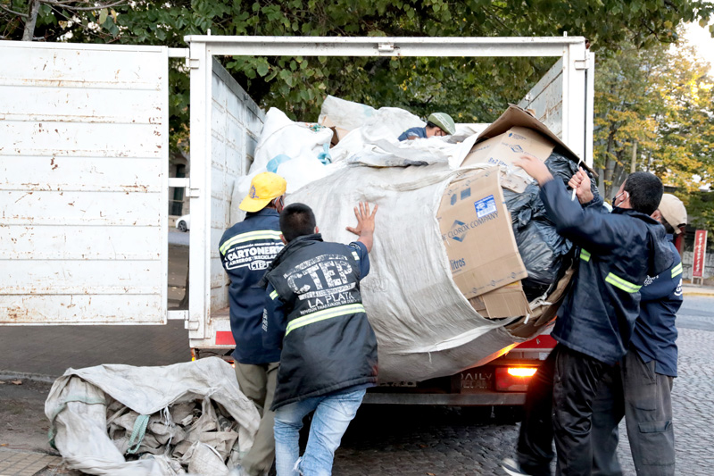 Un grupo de jóvenes llega a Plaza Rocha cargando sus carros con cartones, papeles y botellas de plástico. Se identifican a la distancia por sus camisas azules con vivos fluorescentes que les garantizan ser visibles cuando la tarde de otoño termina y todo se vuelve más oscuro. Encuentran en ese atuendo una identidad que en el contexto de la pandemia representa mucho más que un sentido de pertenencia. Es un lunes de fines de abril en el que las calles de La Plata están más tristes que nunca, desiertas. Ellos terminan la jornada laboral, montan los bolsos con la mercadería en un camión para trasladarla al galpón de la cooperativa que los nuclea. Es bastante menos que en tiempos normales pero saben que les pagarán el mejor precio por kilo del mercado. Y se van para sus casas con el cuerpo cansado pero mejor ánimo desde que pudieron volver a trabajar.