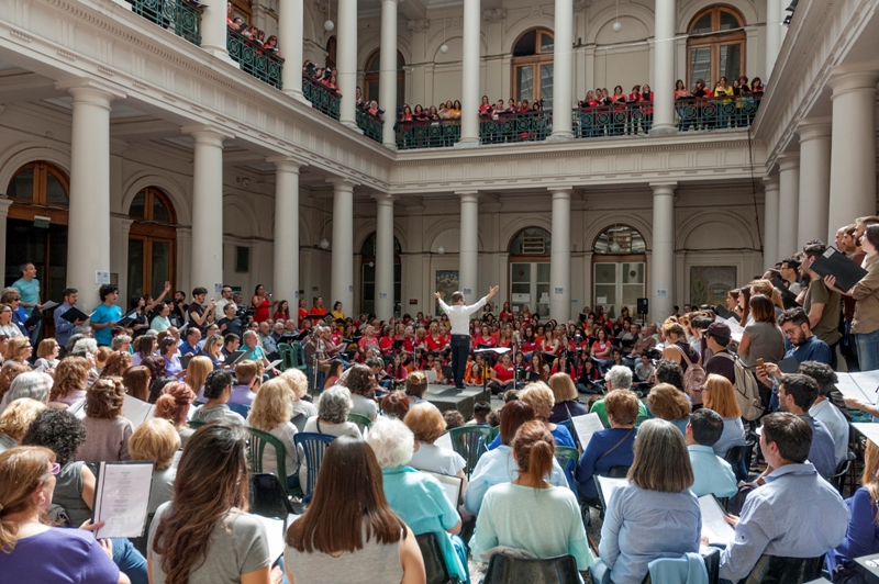 Una inmensa masa coral dio vida en el Rectorado a una obra que explora el sonido a capella en