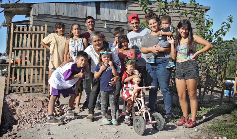 Mónica, la mamá de todos ellos y de otros nueve hijos, es una de las vecinas que fue relocalizada y habita una vivienda de madera con un patio adelante, donde los domingos suele juntarse a comer con parte de la familia. Antes había estado en otra casilla levantada por Néstor en un sector que está reservado al espacio público. No hay más de 300 metros entre uno y otro lugar, pero la distancia formal es mayor y marca la diferencia entre tener o no tener un lugar ya confirmado para vivir dentro de la urbanización.