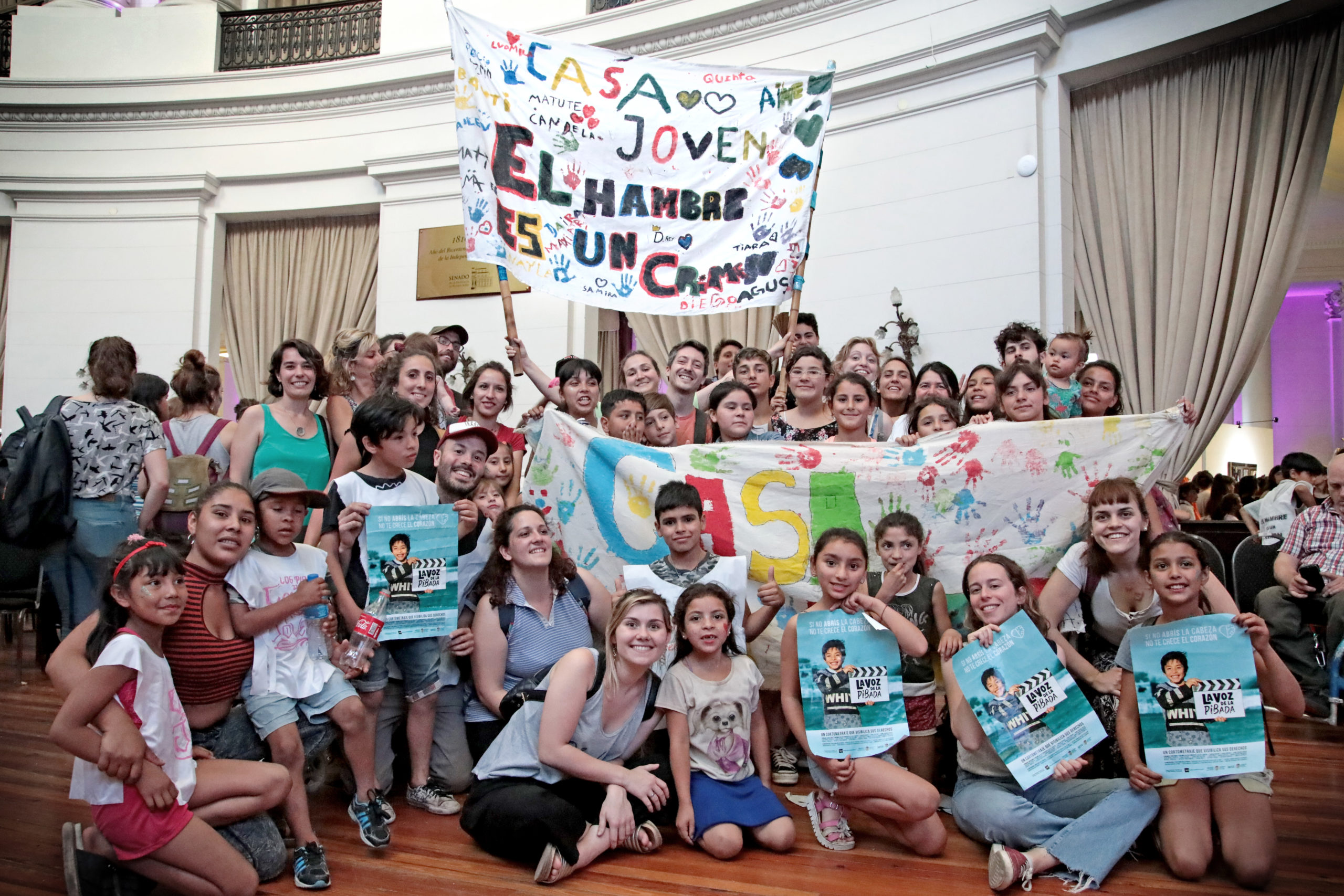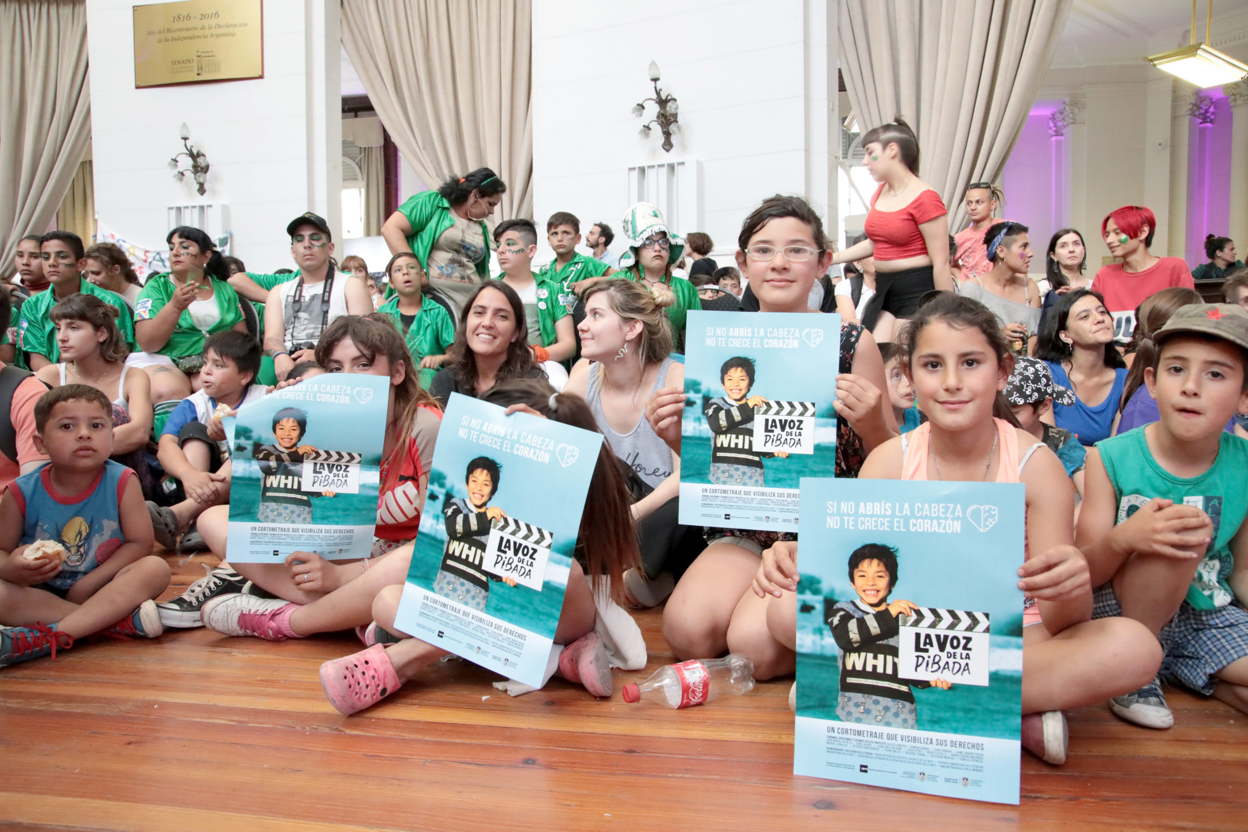 Con el salón principal, llamado Eva Perón, del Centro Cultural del Senado de la Provincia de Buenos Aires (7 y 49) completamente desbordado de un público entre los que se contaban cientos de niños, niñas y jóvenes, incluidos los protagonistas de la filmación, se estrenó el 7 de noviembre pasado, después de un año y medio de rodaje en catorce barrios de la periferia, el cortometraje La voz de la pibada.