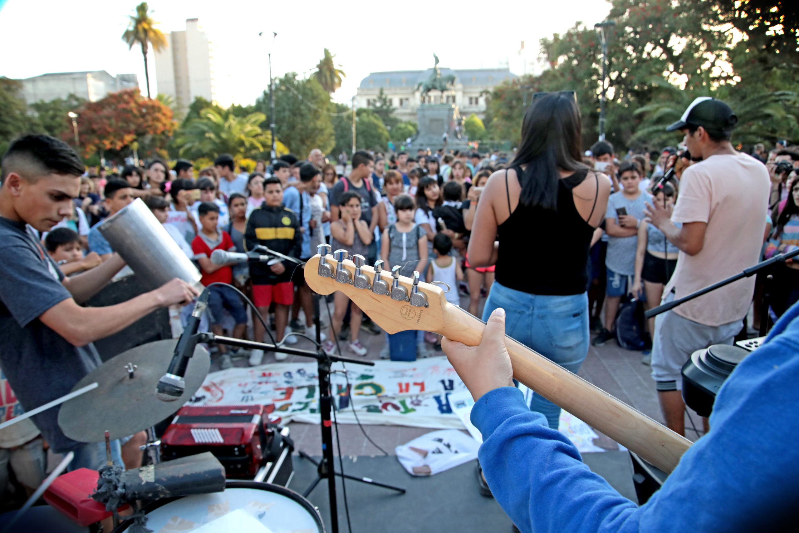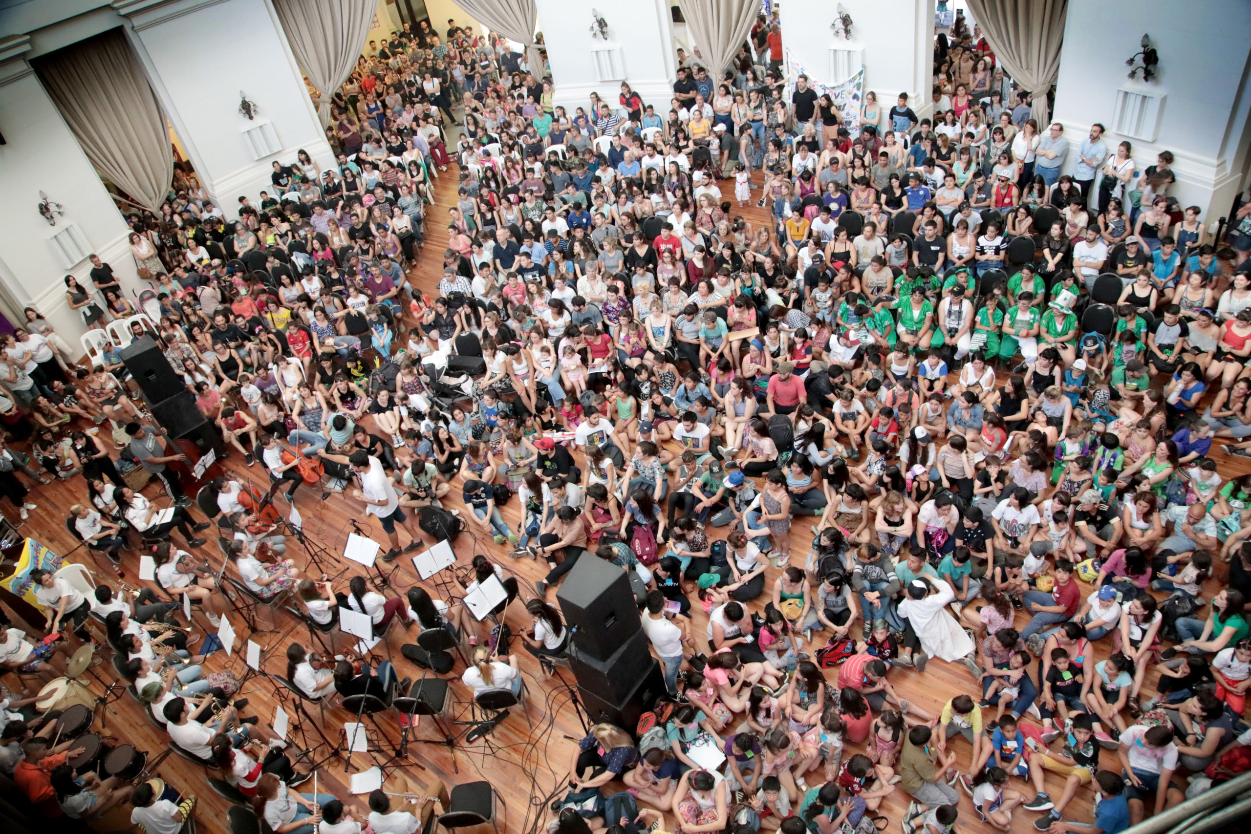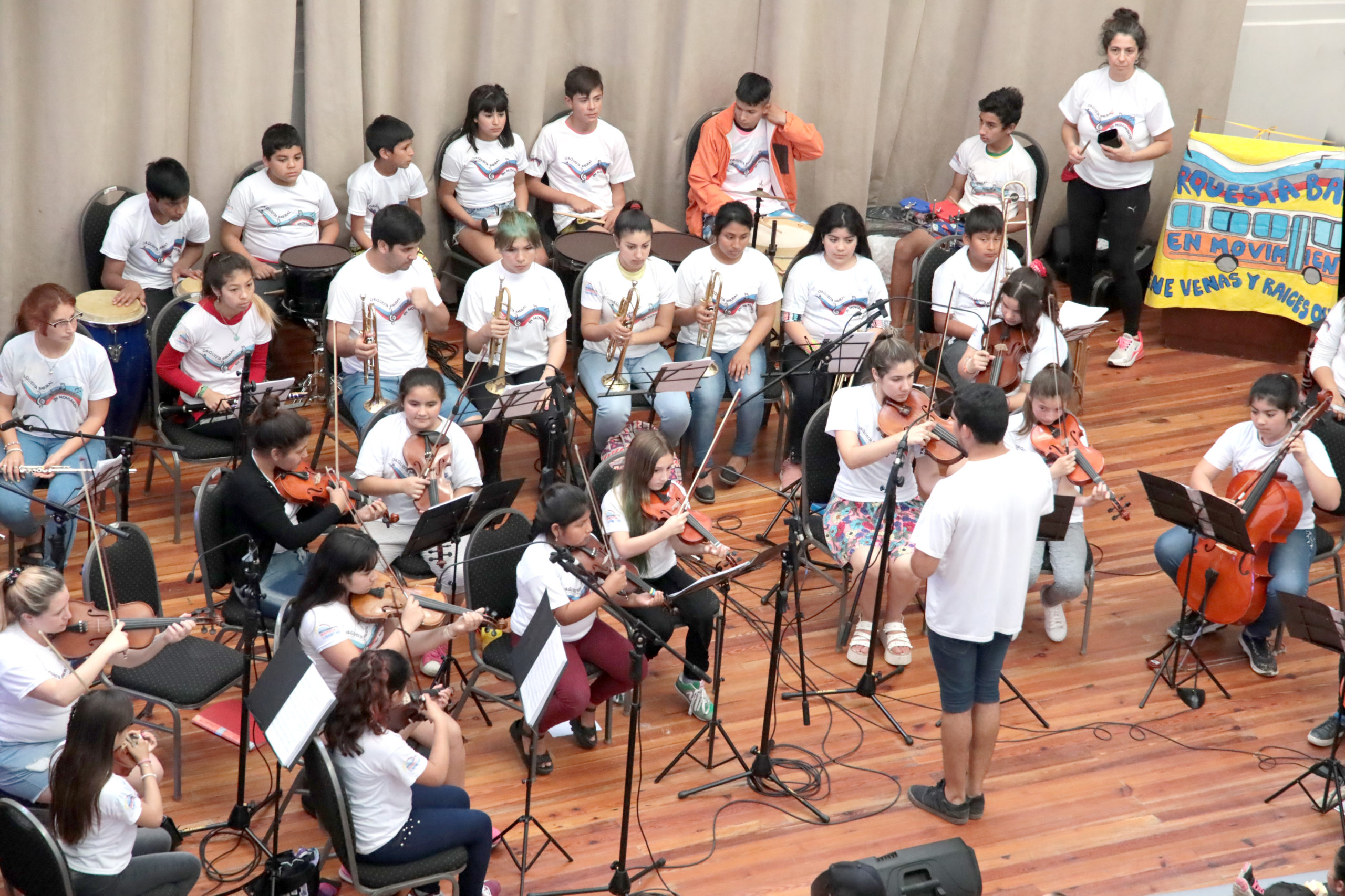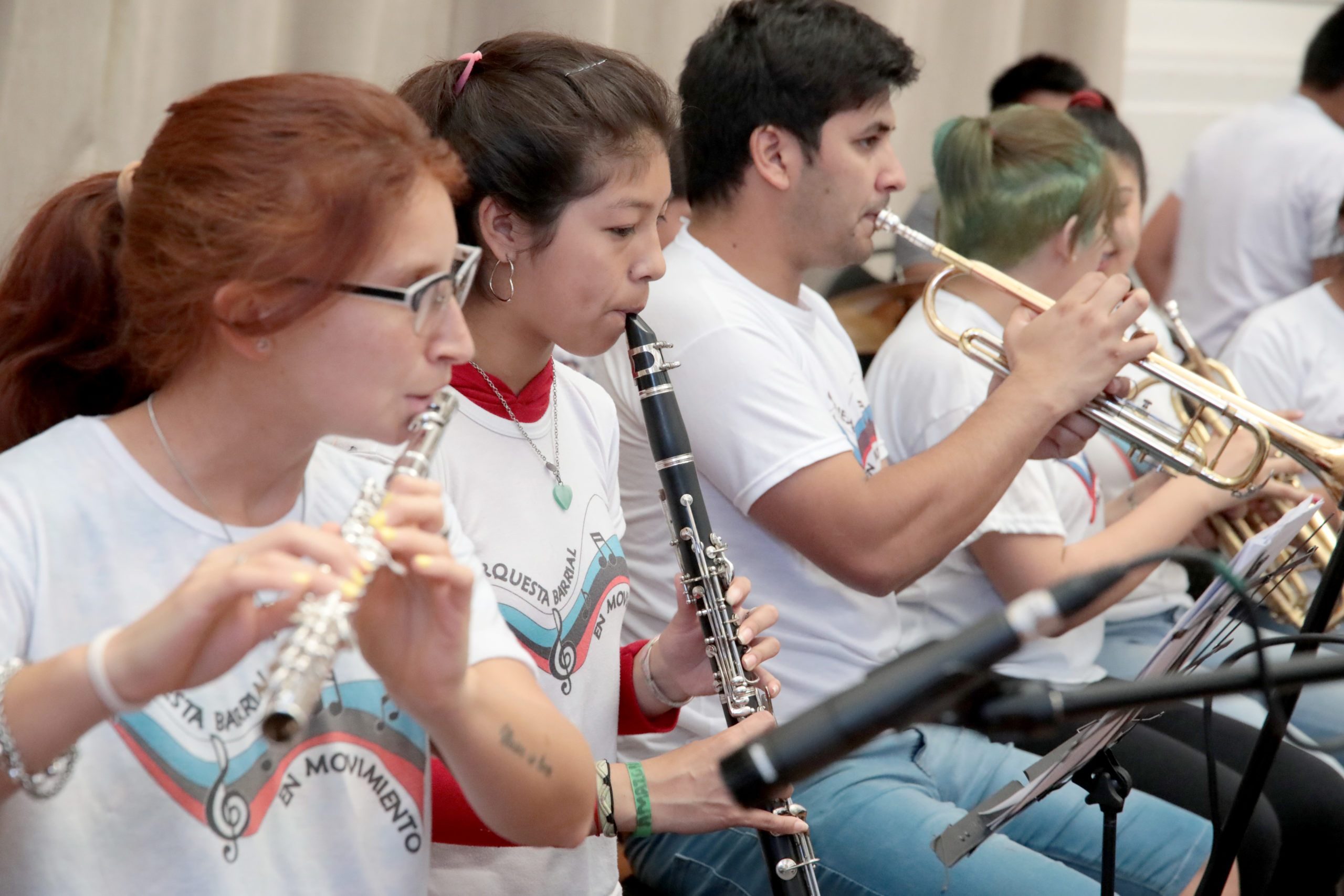 La jornada arrancó con la actuación en vivo de la Orquesta Barrial En Movimiento (Movimiento Justicia y Libertad), que también estuvo a cargo de la musicalización del audiovisual.