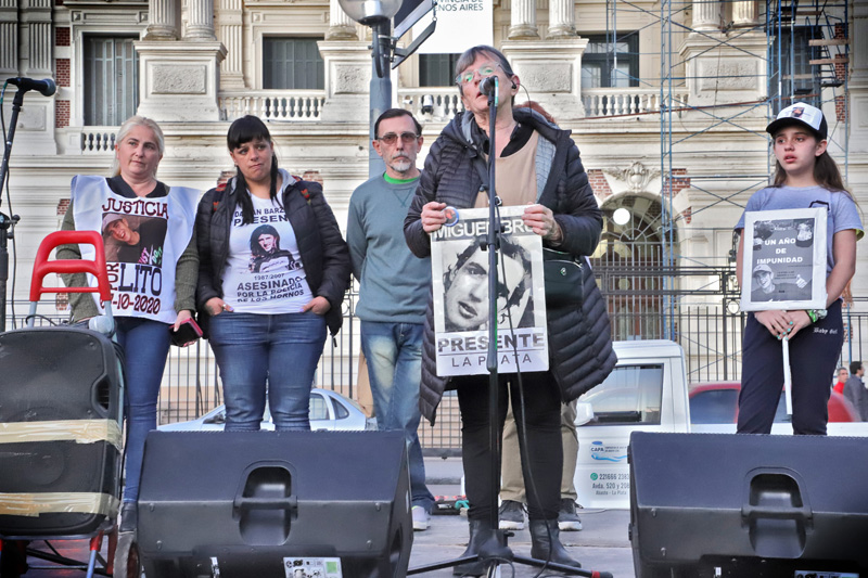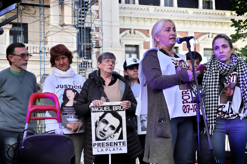 Esta vez lo hicieron acompañados por otras familias víctimas de la violencia policial, entre ellas las de Miguel Bru y Andrés Núñez, con Rosa Schonfeld y Mirna Gómez, además de Rubén López, el hijo del desaparecido Julio López.