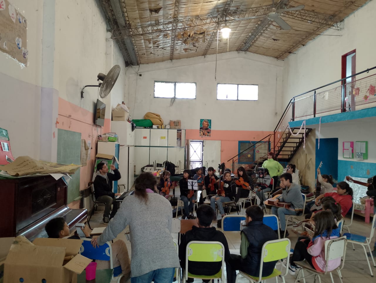 Ahora bien, este proyecto musical no podría haber sucedido sin el trabajo territorial y comunitario. Educadorxs de Casa Joven y Casa de Lxs Niñxs abren sus puertas de lunes a sábados para que se desarrollen diferentes talleres y actividades. En el marco de la Orquesta, los martes a la mañana se dictan clases grupales de instrumento de guitarra y vientos andinos y, ese mismo día por la tarde, hay clases de viola y de violín.